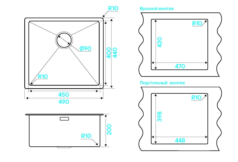 Материал: AISI304 Ручное производство R-10