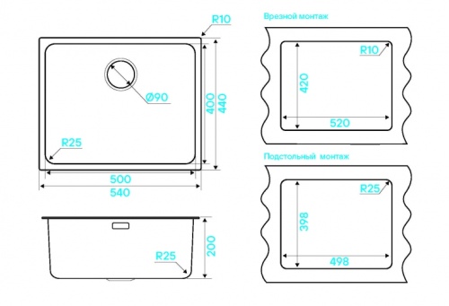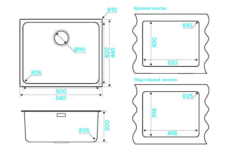 Тип монтажа: Универсальный (подстольный+врезной)