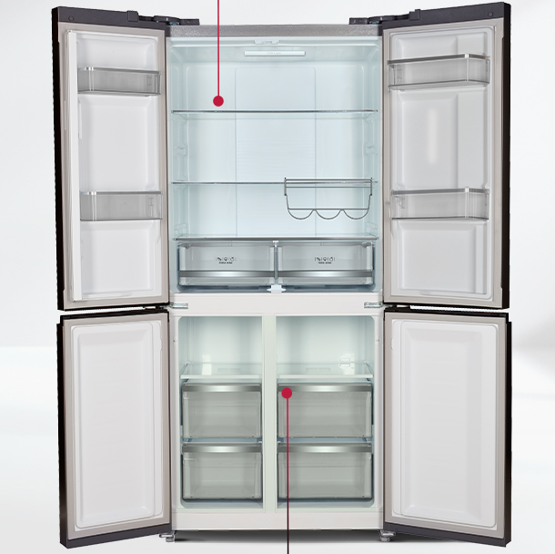Количество полок/ящиков: В холодильной камере – 2+2 / В морозильной камере – 4