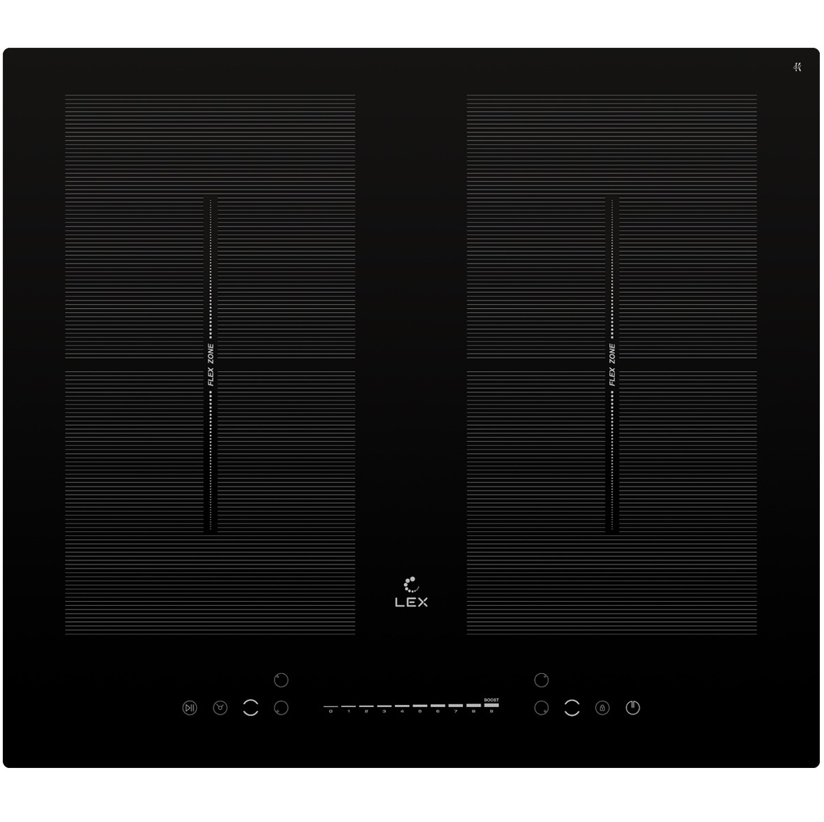Flex zone (R1 + R2): 1 х 3000 Вт (210 х 390 мм.), 1 х 3400 Вт (210 х 390 мм.) – в режиме BOOST
